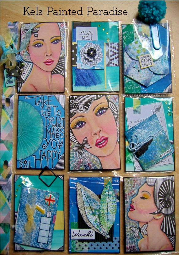 Mixed Media | Five Gatefold A.T.C's | Faux Crackle Effect
